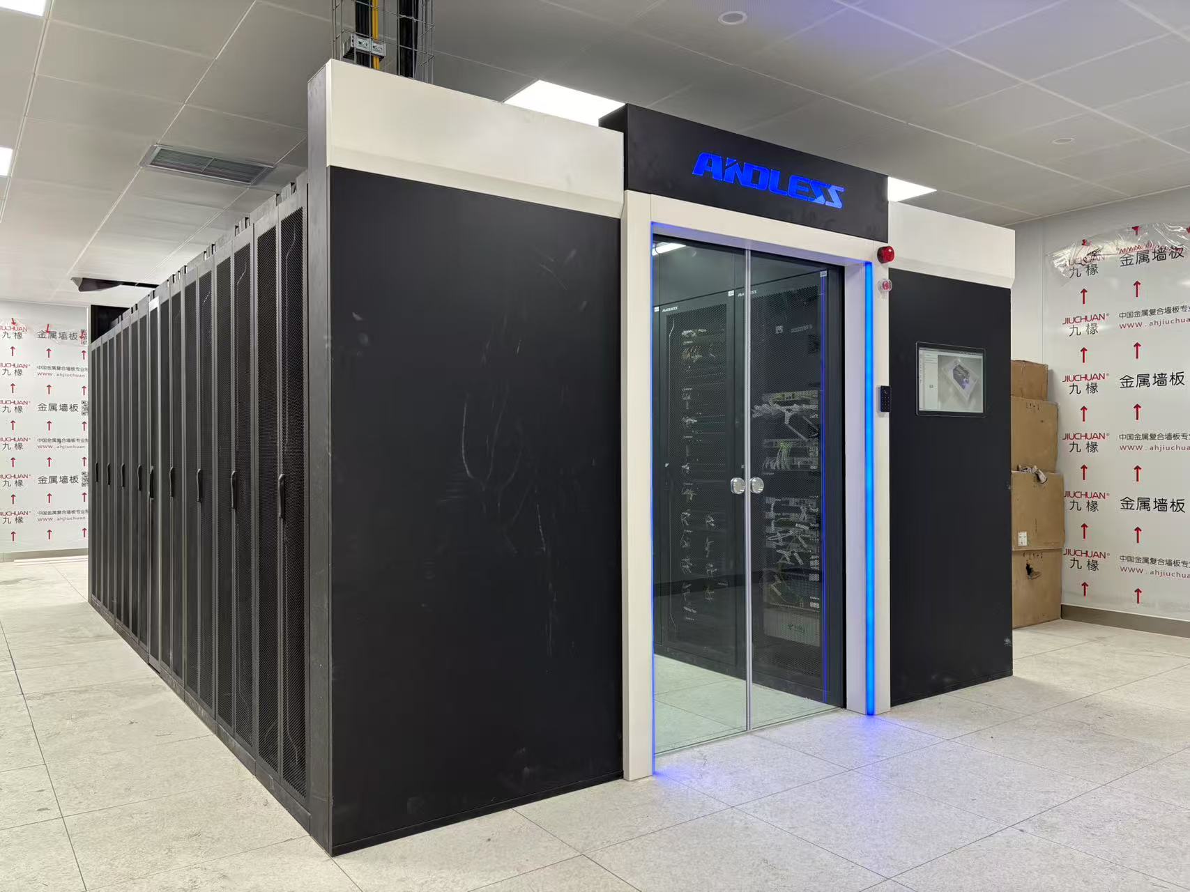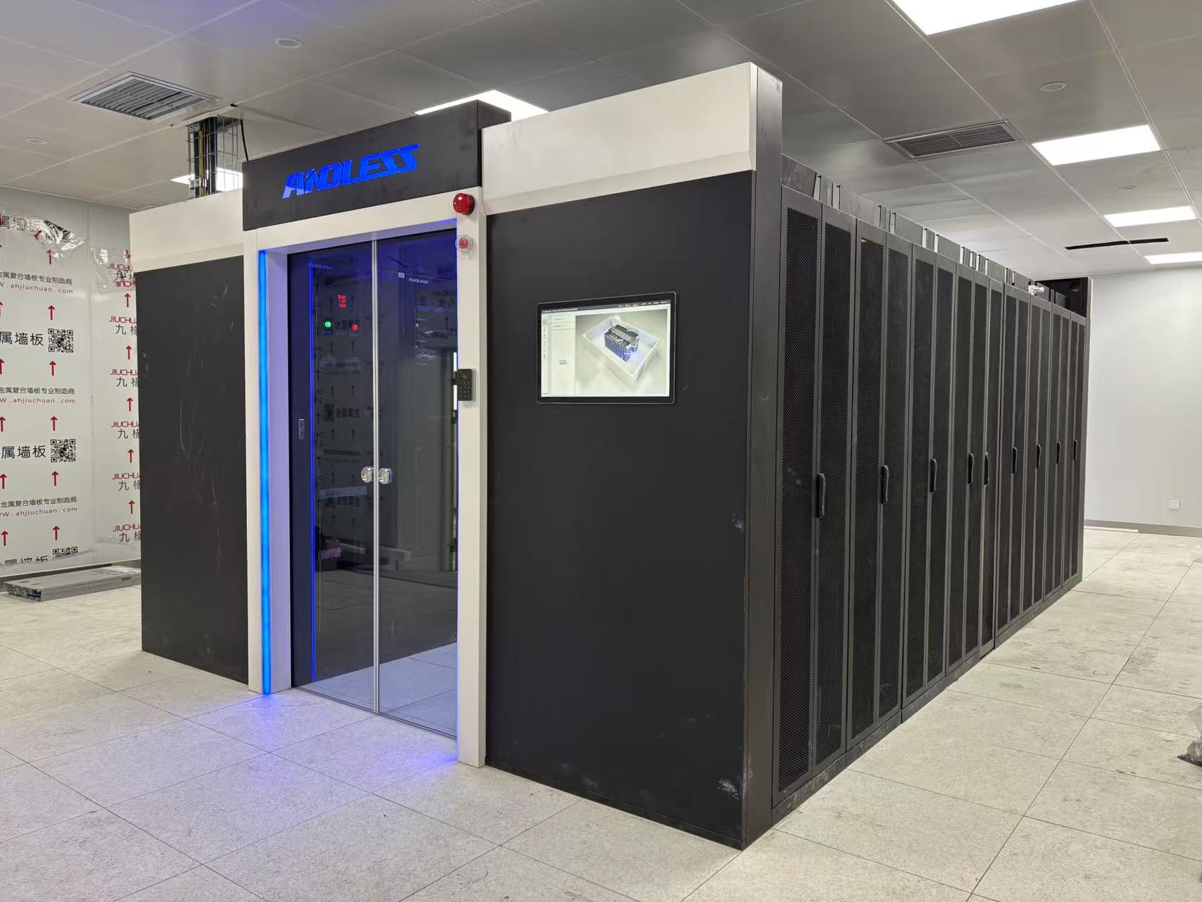 雙排冷通道系統(tǒng),包括:頂部強弱電走線槽、封閉軌跡對開門、消防天窗、消防聯(lián)動(聲光報警煙霧感應(yīng)溫濕感應(yīng))、行間恒溫恒濕精密空調(diào)、UPS、精密配電柜、數(shù)據(jù)中心專用機柜包括并柜組件、封閉冷通道、環(huán)境監(jiān)控系統(tǒng),通道各部件與機柜間有效密封,機柜內(nèi)部非設(shè)備區(qū)有效密封。能源利用效率高針對現(xiàn)代數(shù)據(jù)中心對綠色節(jié)能、降低排放、模塊化、智能監(jiān)控要求設(shè)計開發(fā),被廣泛應(yīng)用于金融、政府、電信、能源、交通、醫(yī)療教育、制造等行業(yè)各類新建、改擴建數(shù)據(jù)中心,有效提高能源效率。