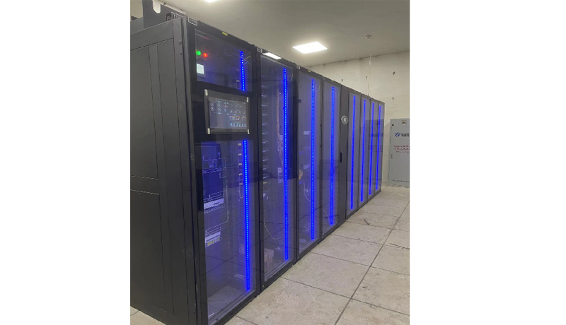 江蘇省鹽城天森機(jī)器人項(xiàng)目信息化建設(shè)采用微模塊機(jī)房建設(shè),為保證系統(tǒng)的穩(wěn)定供電,避免停電等突發(fā)事件對(duì)業(yè)務(wù)的影響,引入U(xiǎn)PS不間斷電源系統(tǒng)是至關(guān)重要的。單排微模塊機(jī)柜的制冷模塊,采用靠近熱源的列間空調(diào),和標(biāo)準(zhǔn)機(jī)柜一體化設(shè)計(jì)。柜體采用全封閉設(shè)計(jì),冷熱通道分離;空調(diào)采用后進(jìn)風(fēng),前出風(fēng)90°左回風(fēng)的方式,送風(fēng)距離短、循環(huán)風(fēng)阻小,大大提高制冷效率,實(shí)現(xiàn)高密度制冷。