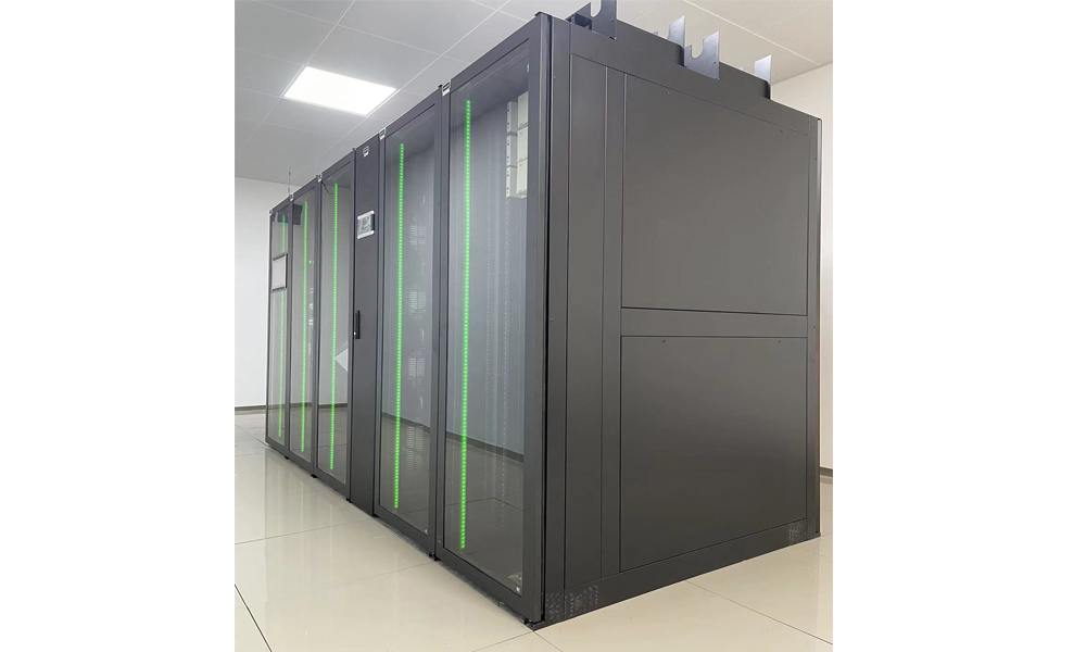 江蘇省鹽城天森機(jī)器人項目信息化建設(shè)采用微模塊機(jī)房建設(shè),為保證系統(tǒng)的穩(wěn)定供電,避免停電等突發(fā)事件對業(yè)務(wù)的影響,引入UPS不間斷電源系統(tǒng)是至關(guān)重要的。信息機(jī)房采用安德力士GLV單排微模塊系統(tǒng)1套,系統(tǒng)使用行間空調(diào)1臺。單排微模塊機(jī)柜的制冷模塊,采用靠近熱源的列間空調(diào),和標(biāo)準(zhǔn)機(jī)柜一體化設(shè)計。柜體采用全封閉設(shè)計,冷熱通道分離;空調(diào)采用后進(jìn)風(fēng),前出風(fēng)90°左回風(fēng)的方式,送風(fēng)距離短、循環(huán)風(fēng)阻小,大大提高制冷效率,實現(xiàn)高密度制冷。